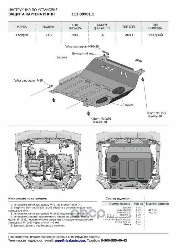 Защита картера и КПП Changan CS35 крепеж в комплекте сталь 1.8 мм черный АвтоБроня