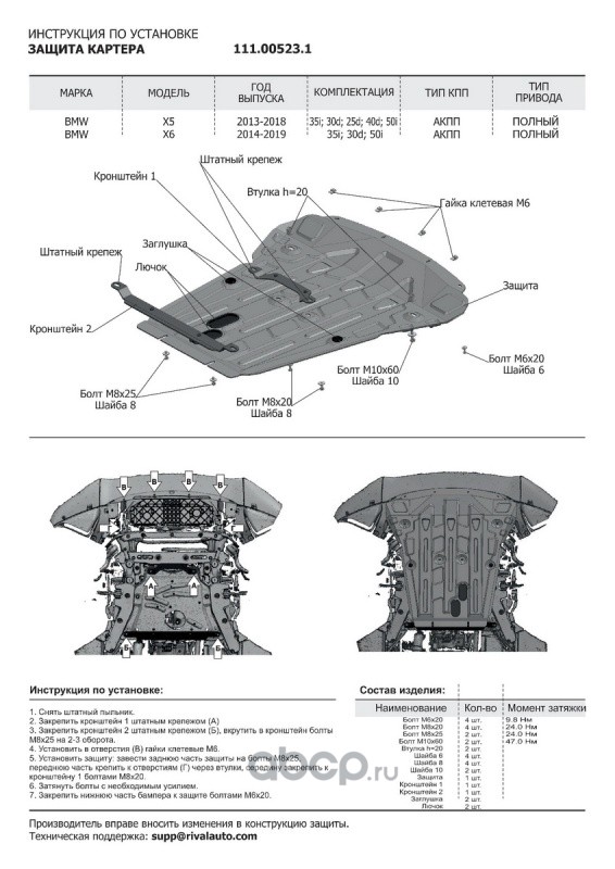 Защита картера BMW X5 13-18/X6 14-20, st 1.8mm