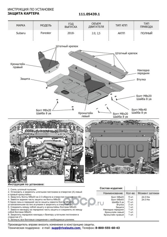 Защита КПП Subaru XV I CVT 2011-2017, 111.05422.1