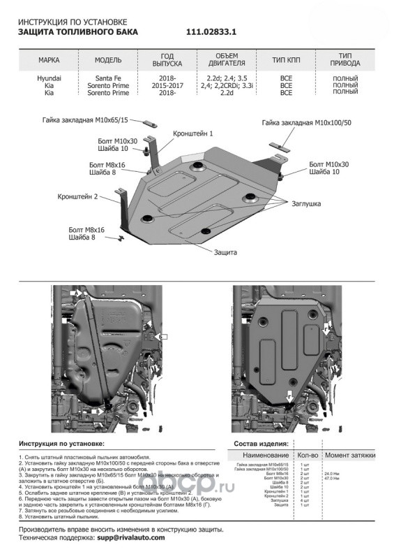 Защ.топл.бака Hyund.Santa Fe/Kia Sorento Prime, st