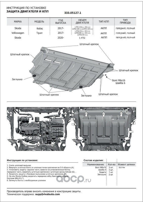 ЗК+КПП Skoda Karoq/Kodiaq/VW Taos/Tiguan, al 3 mm
