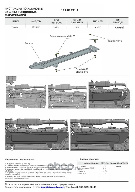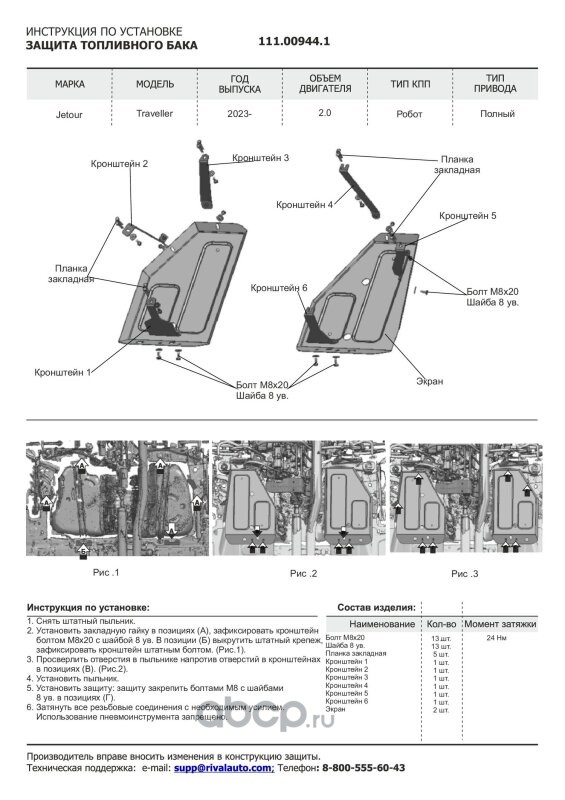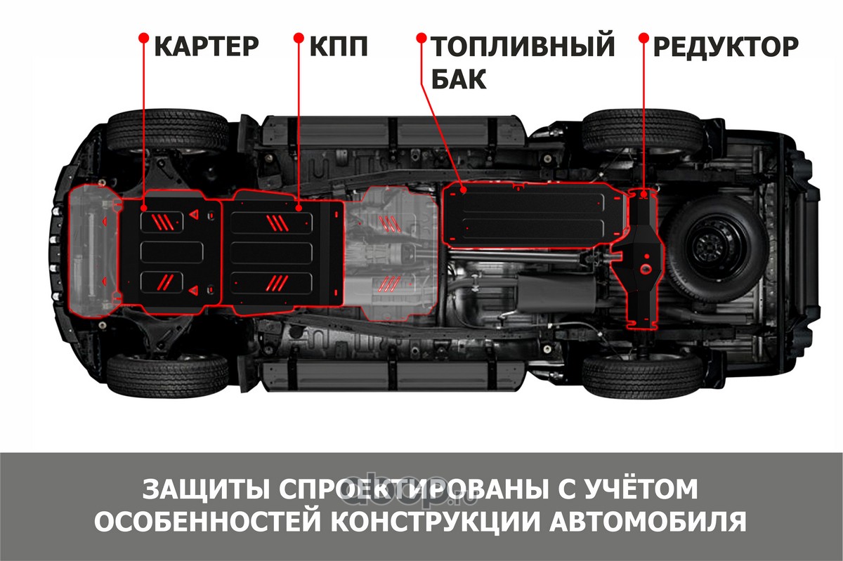 Защита картера, КПП, топливных магистралей, редуктора, сталь 1.5 мм, с крепежом, штампованная, 3 части