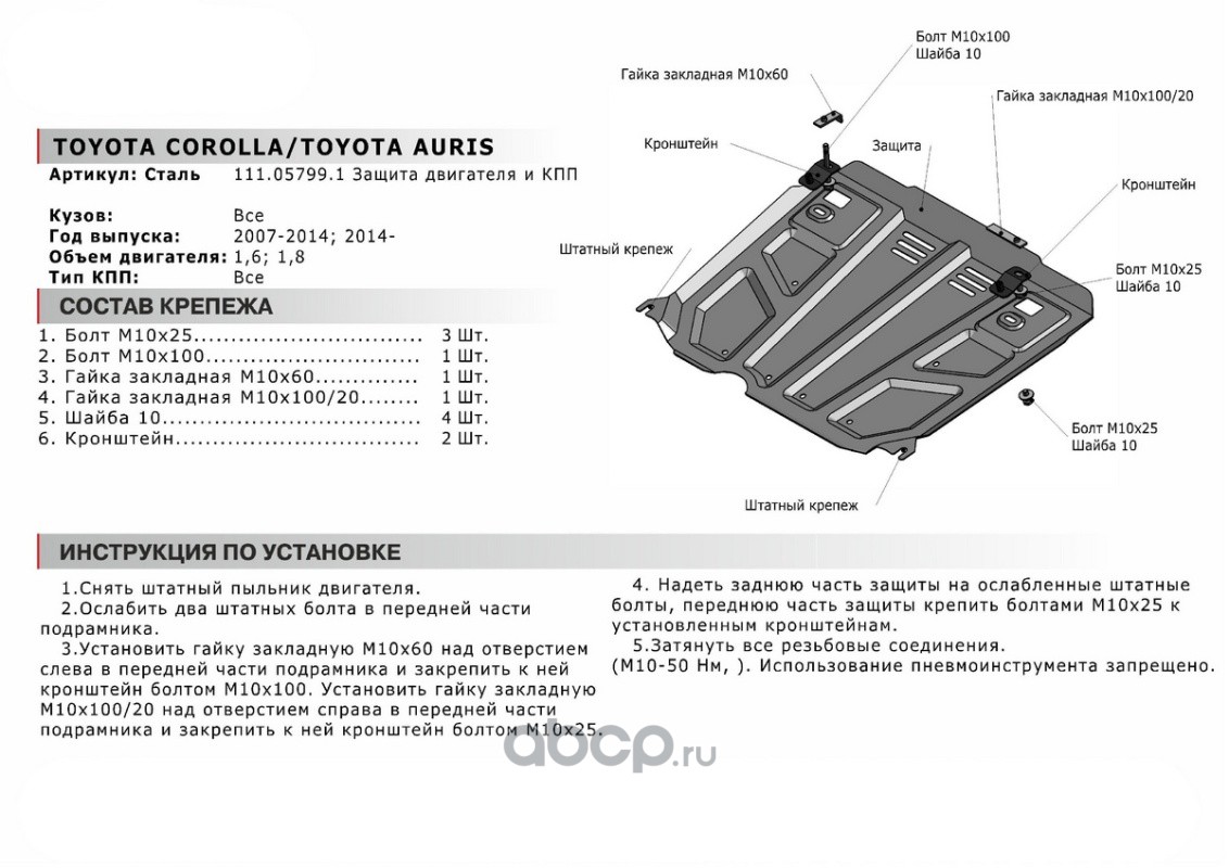 Защита картера и КПП, штампованная, сталь 1.8 мм, с крепежом
