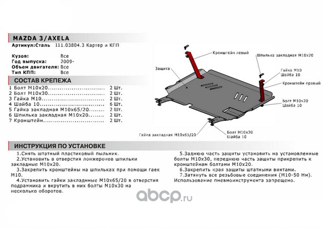 Защита картера и КПП Mazda 3, Axela крепеж в комплекте сталь 1.8 мм черный АвтоБроня