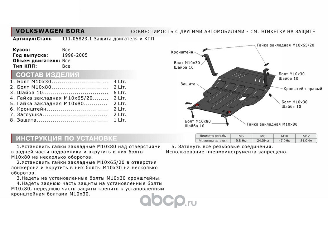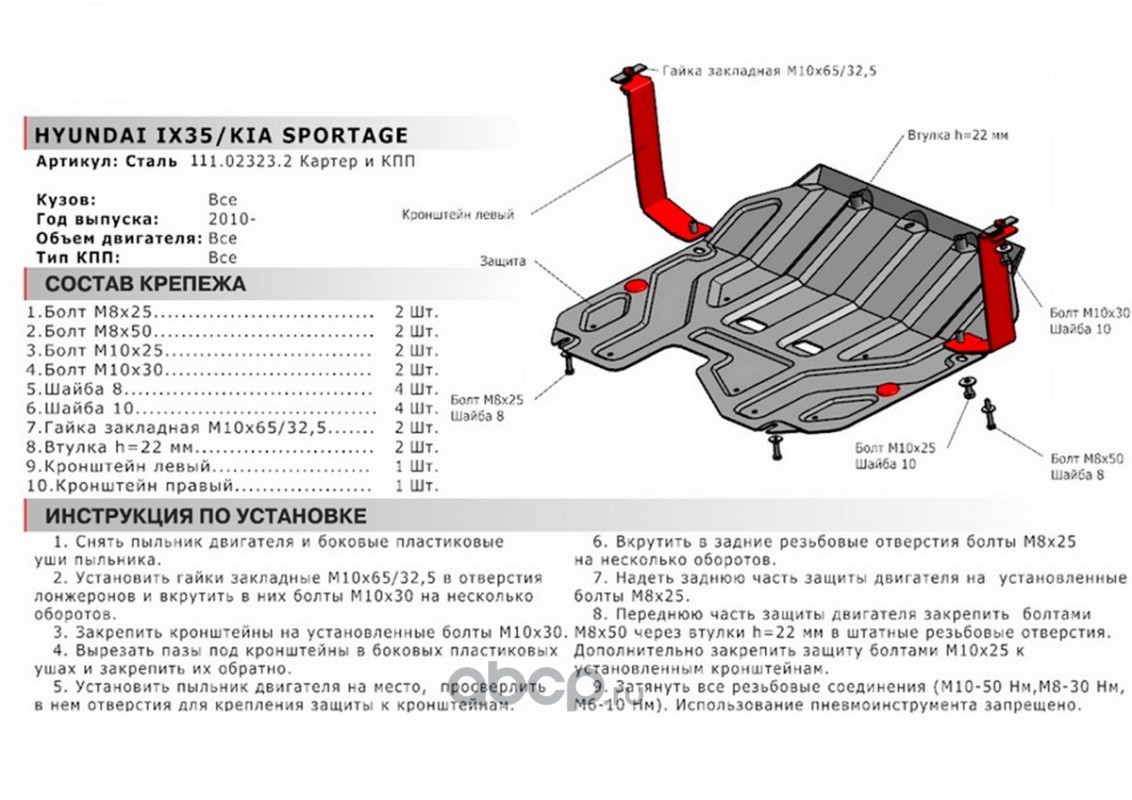 Защита картера и КПП, штампованная, сталь 1.5 мм, с крепежом