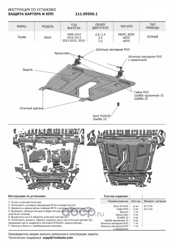 Защита картера и КПП Toyota RAV4 крепеж в комплекте сталь 1.8 мм черный АвтоБроня