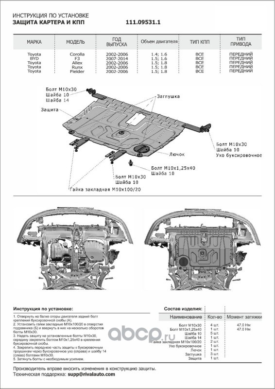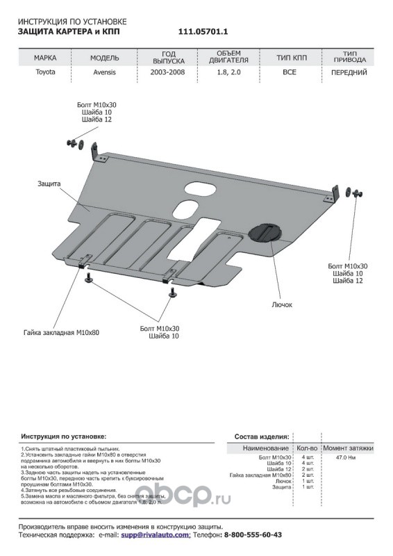 Защита картера и КПП Toyota Avensis крепеж в комплекте сталь 1.8 мм черный АвтоБроня