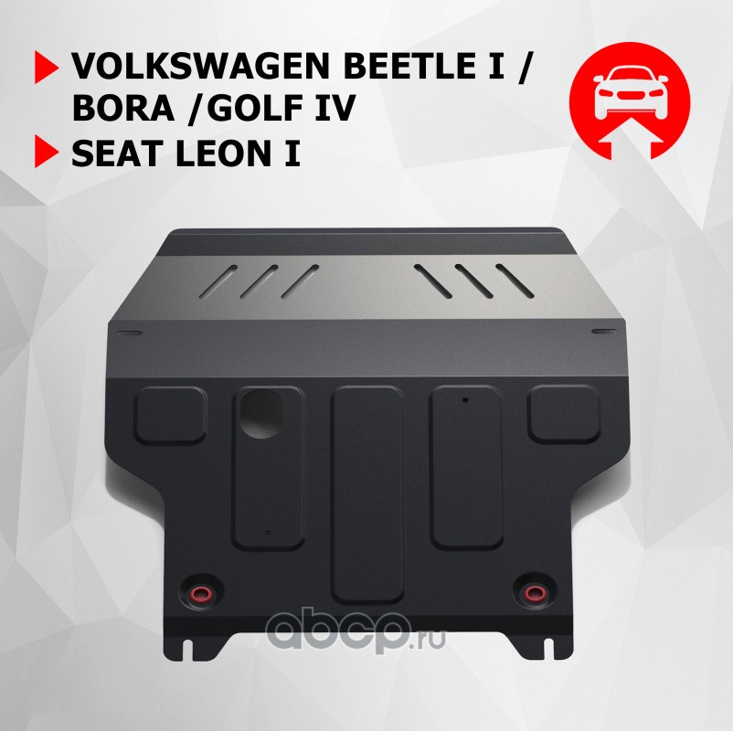 Защита картера и КПП Seat, Volkswagen Leon, Beetle, Bora, Golf крепеж в комплекте сталь 1.5 мм черный АвтоБроня