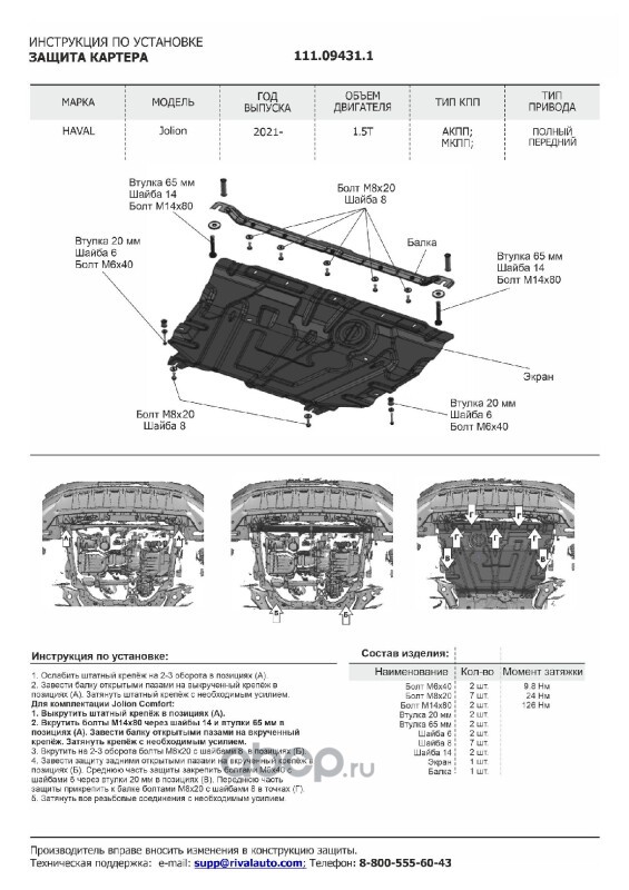 Защита картера и КПП увеличенная, сталь 1.5 мм, с крепежом, штампованная
