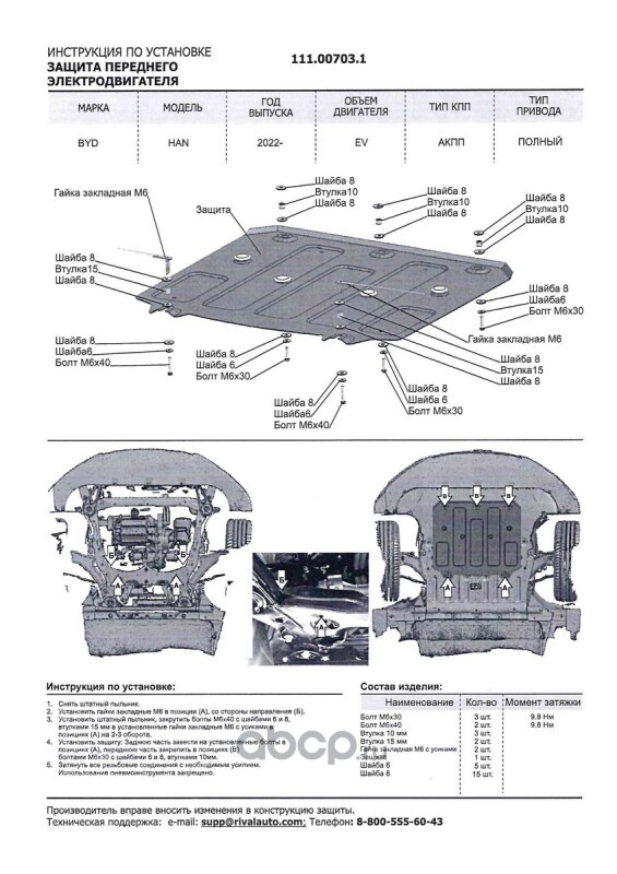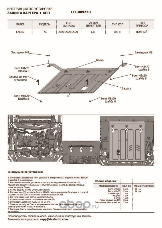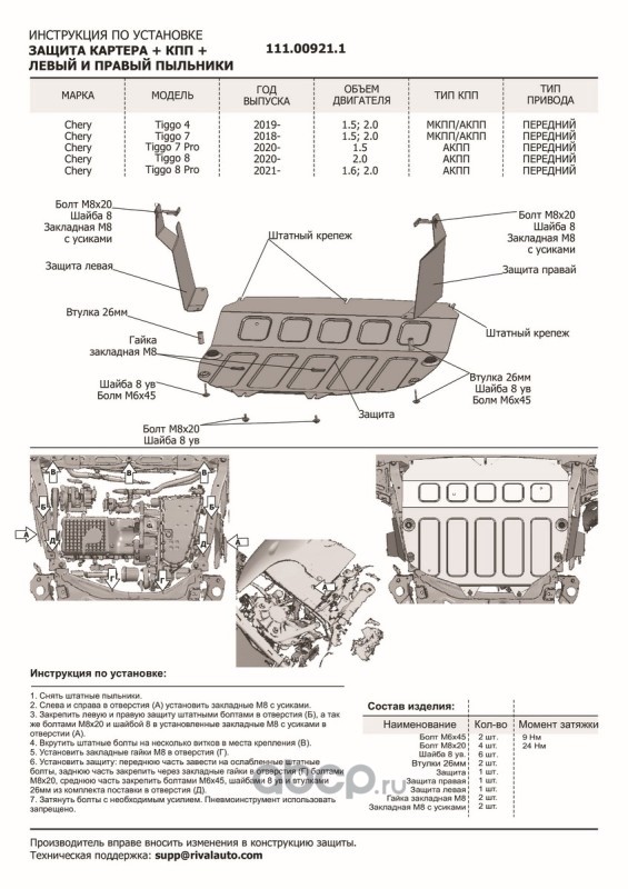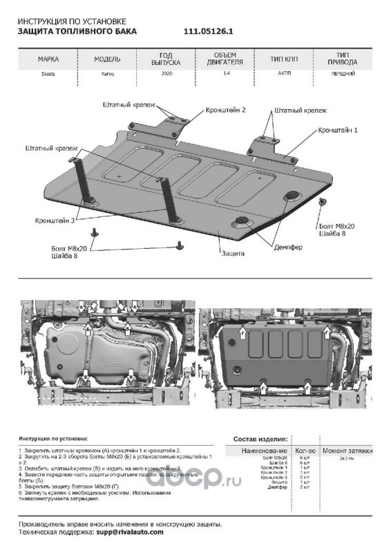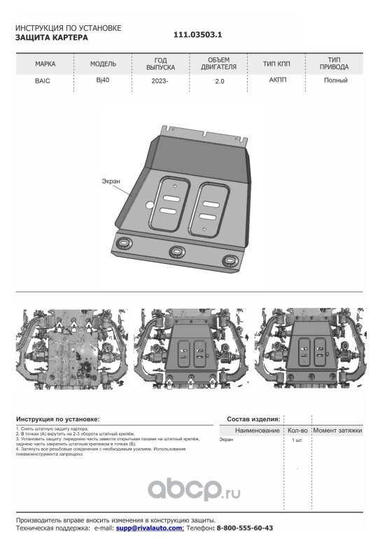 | Автоброня | 111009211 | Защита картера, КПП, пыльников левого и правого | ||