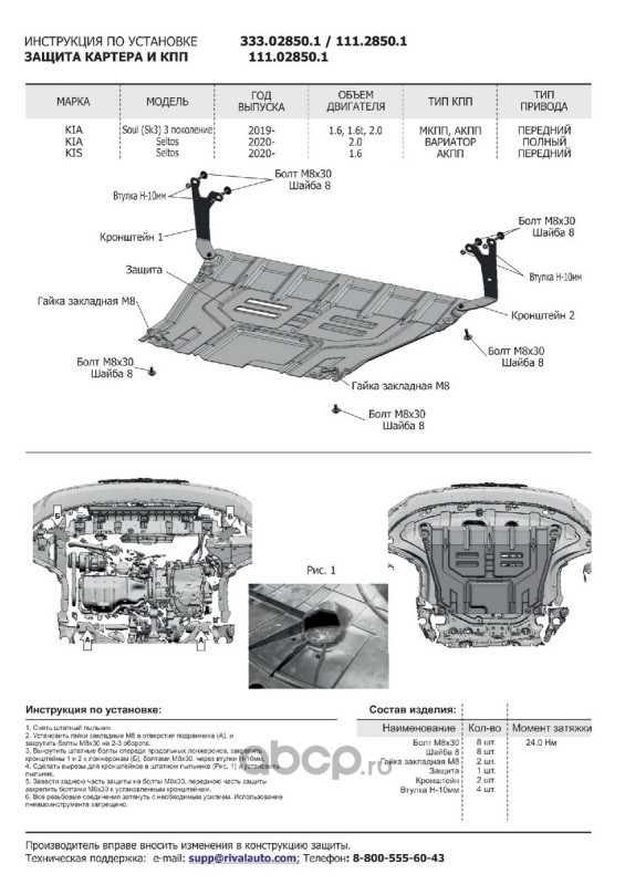 | Автоброня | 333028501 | ЗК+КПП Kia Seltos FWD/4WD 20-/Soul III 19- al 3 mm | ||