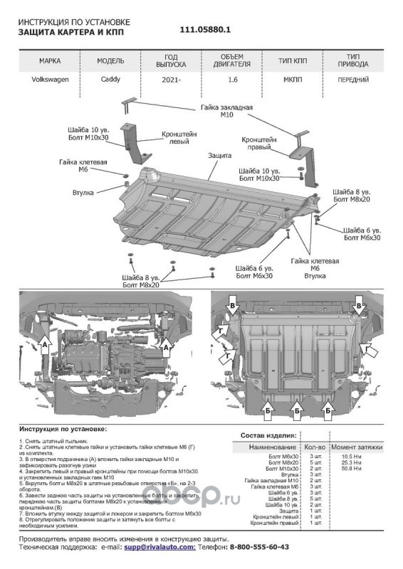 | Автоброня | 111058801 | ЗК+КПП АвтоБроня VW Caddy 20-, 111.05880.1 | ||