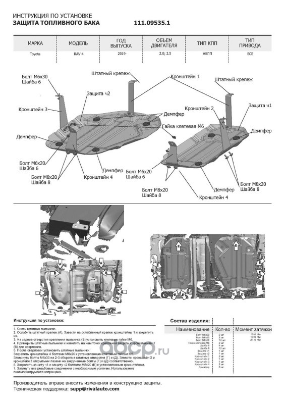 | Автоброня | 111095351 | Защ.топл. бака Toyota RAV4 19-, st 1.5mm, 2 части | ||