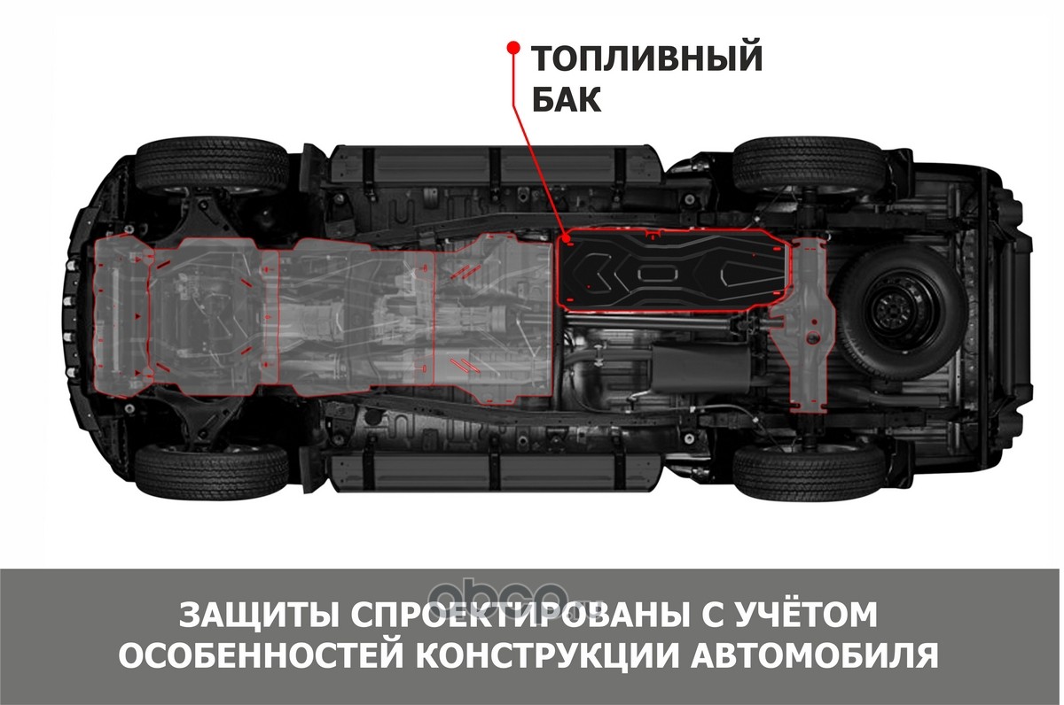 | Автоброня | 333095351 | Защита топливного бака, алюминий 3 мм, с крепежом, штампованная, 2 части | ||