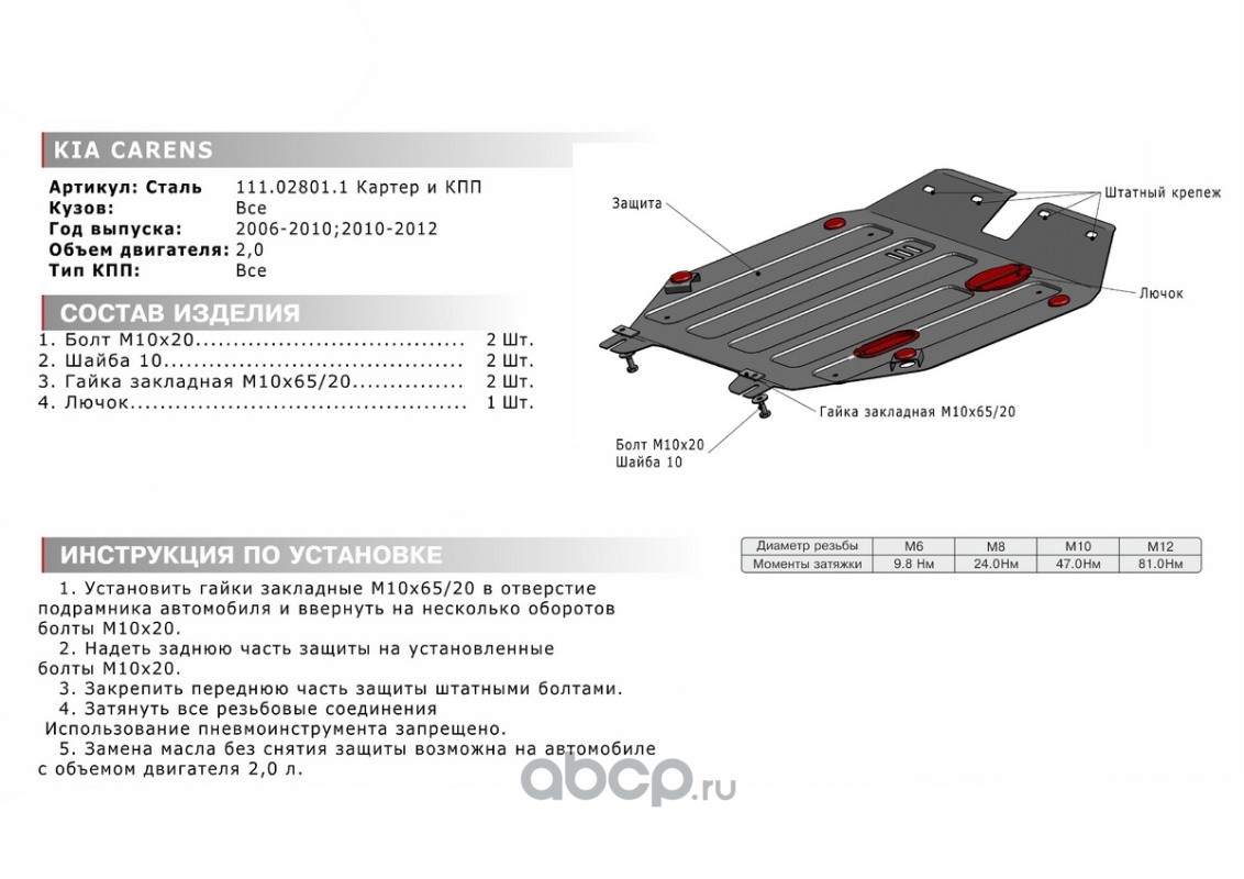 ЗК+КПП Kia Carens UN 2006-2012, st 1.8mm