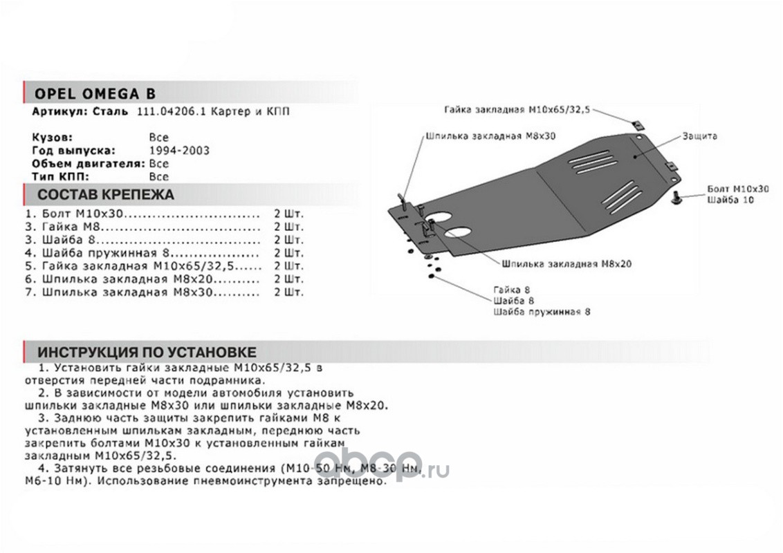 ЗК+КПП Opel Omega B 1994-2004, st 1.8mm