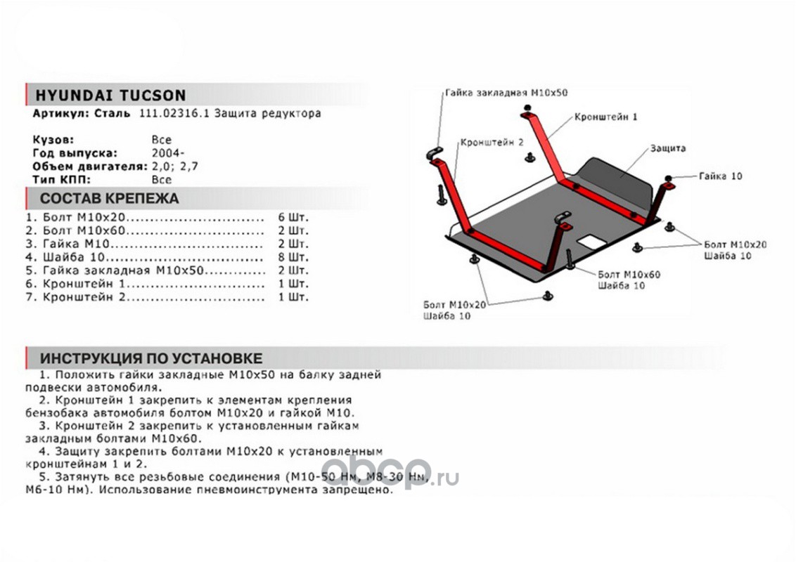 Защ.редуктора Hyundai Tucson 4WD 04-10, st 1.8mm