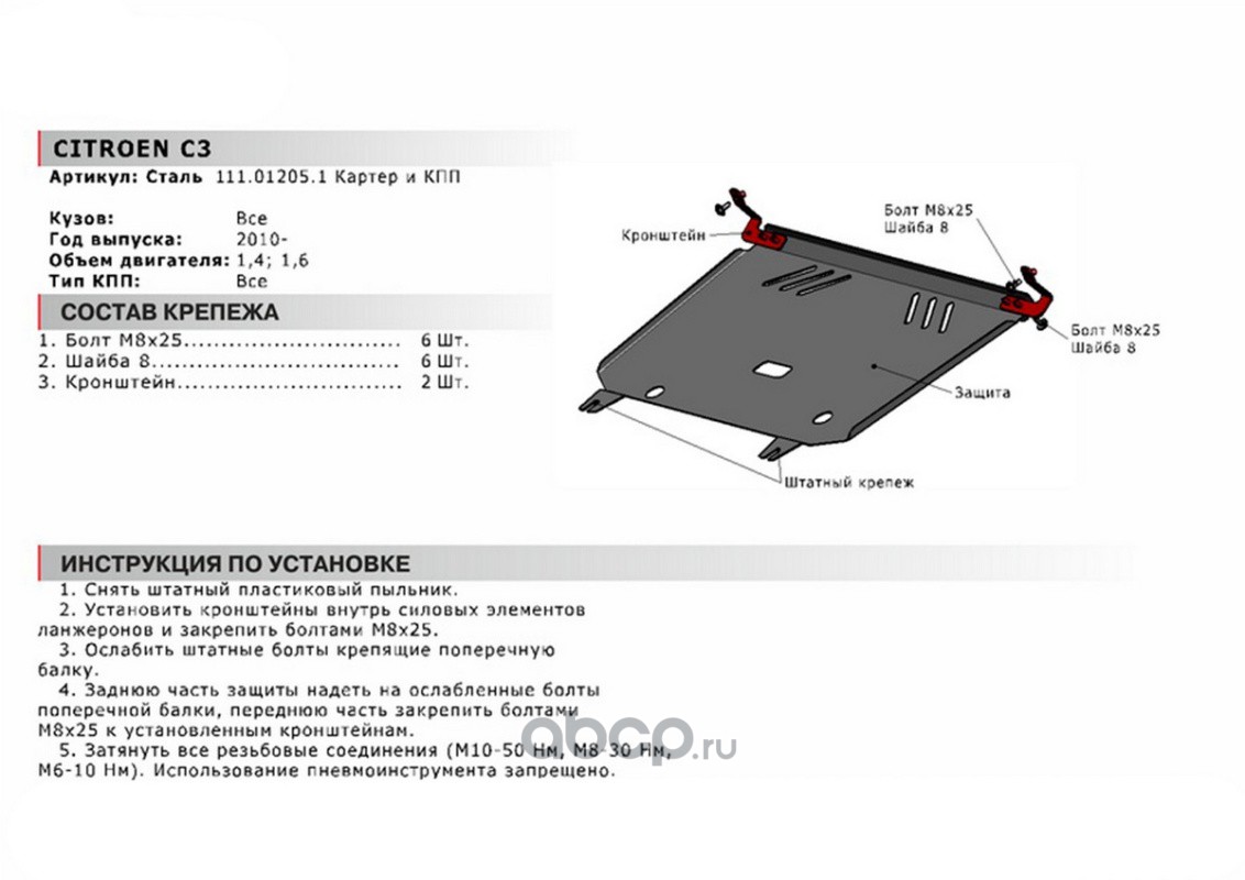 ЗК+КПП Citroen C3 II 2009-2013, st 1.8mm