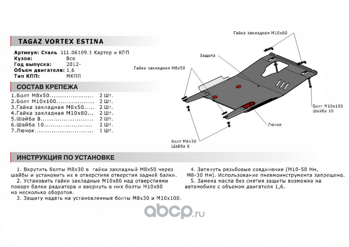ЗК+КПП Vortex Estina II МКПП 2012-2013, st 1.8mm