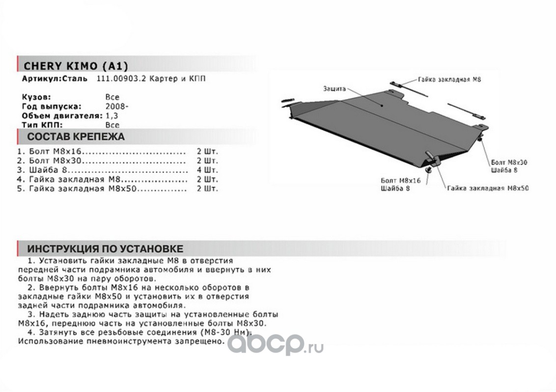 ЗК+КПП Chery Kimo (A1) 2008-2013, st 1.8mm