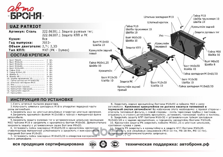 Защита КПП и раздаточной коробки UAZ Patriot (2013-2016)