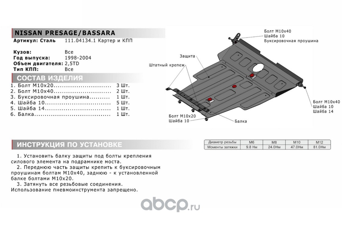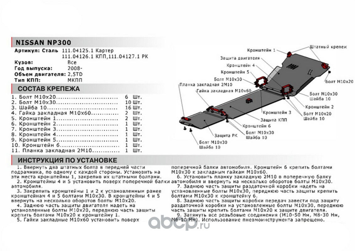 Защита КПП Nissan NP300 2008-2015, 111.04126.1