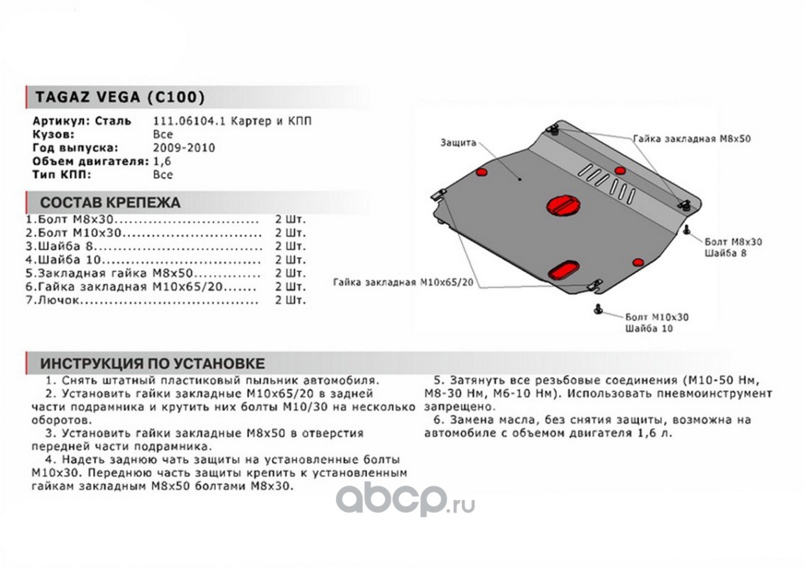 ЗК+КПП ТагАЗ Vega 2009-2010, st 1.8mm
