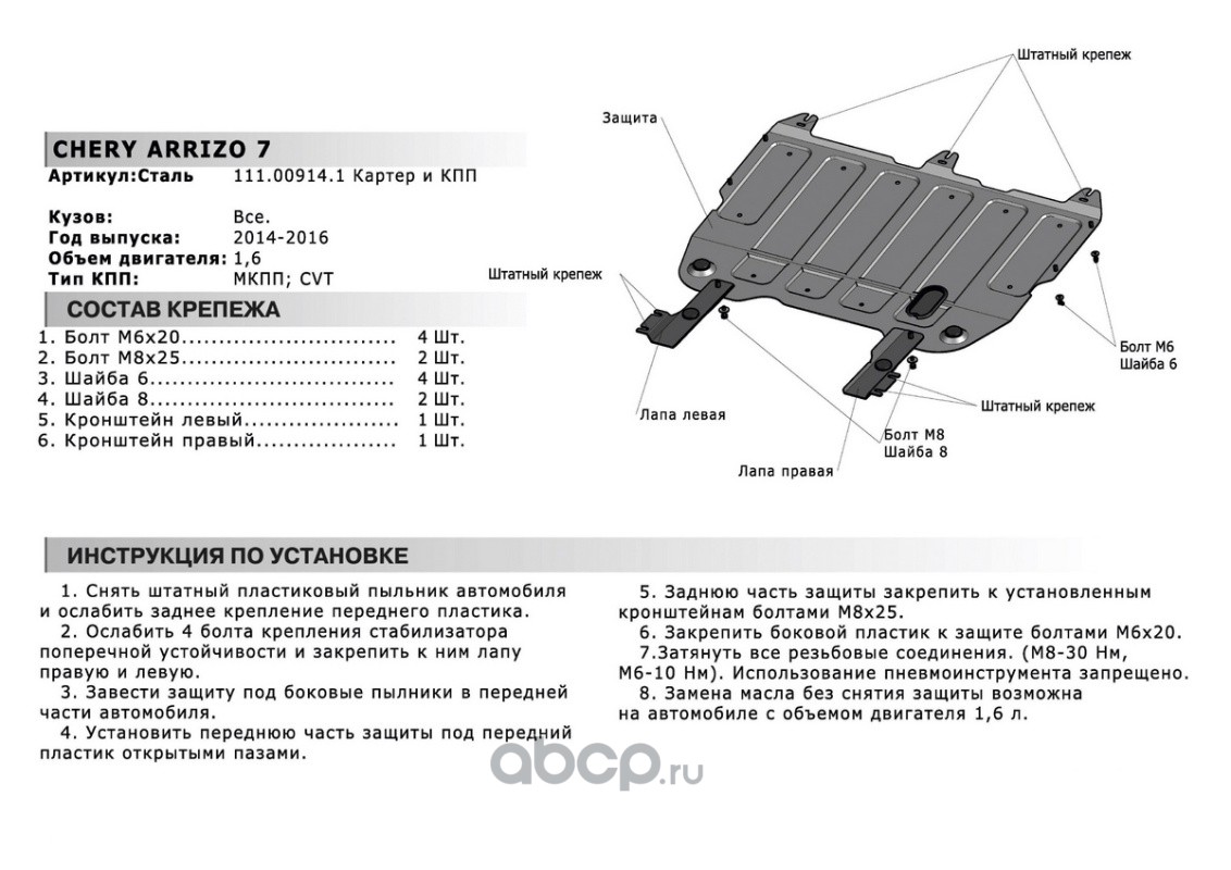 ЗК+КПП Chery Arrizo 7 2014-2016, st 1.8mm