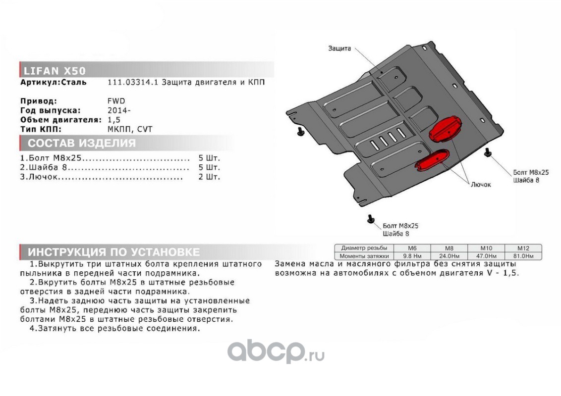 Защита картера и КПП Lifan X50 2015-, st 1.8mm