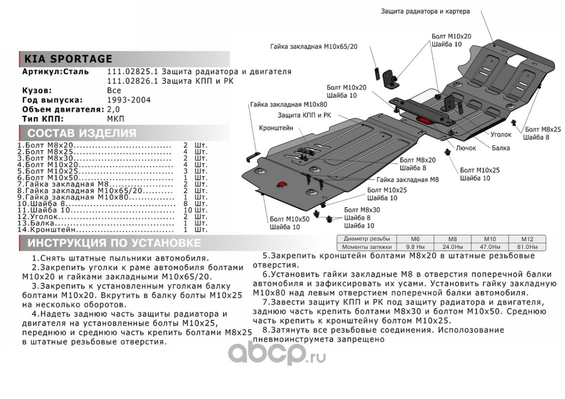Защита КПП Kia Sorento I 2006-2009, 111.02809.1