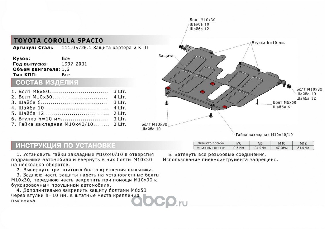 ЗК+КПП Toyota Corolla Spacio I 1997-2001, st 1.8mm