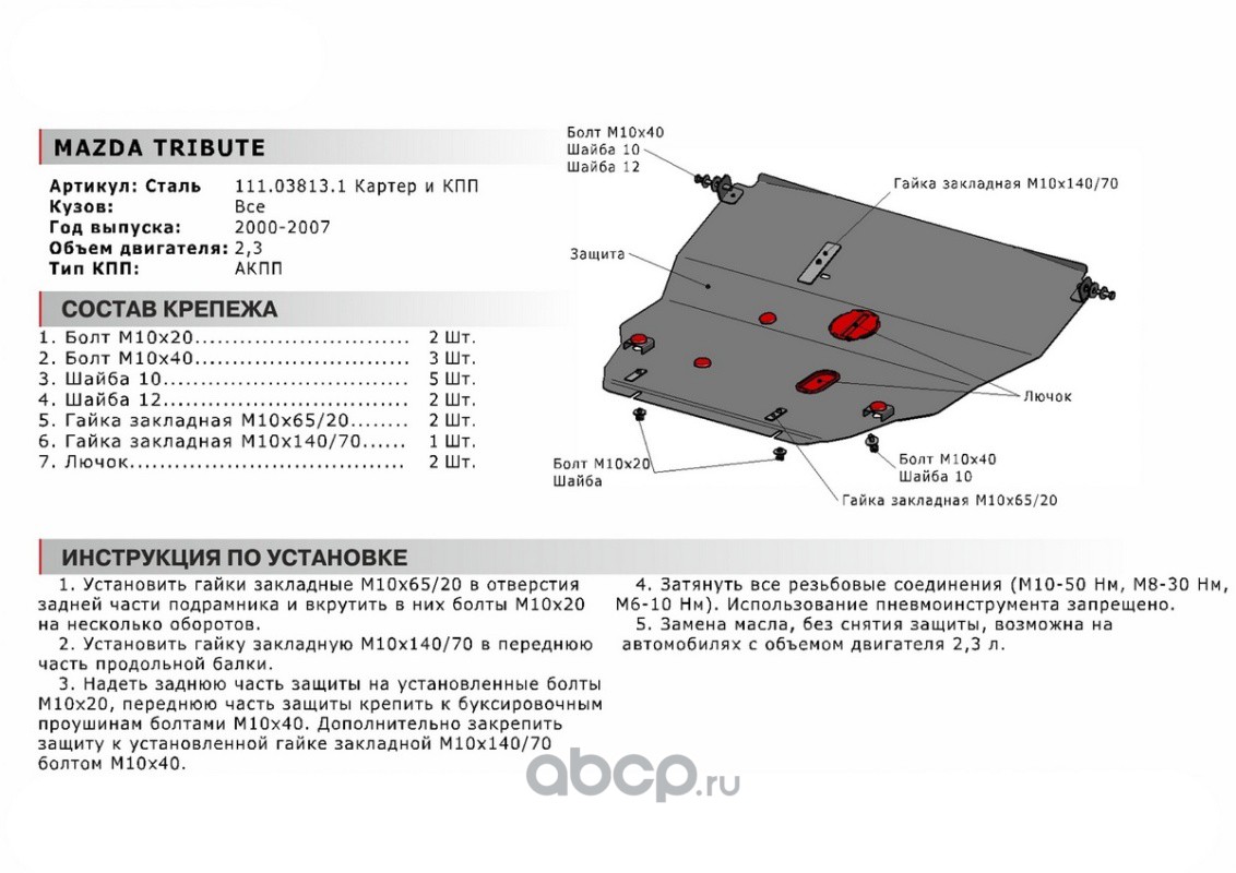 ЗК+КПП Mazda Tribute I 2004-2007, st 1.8mm