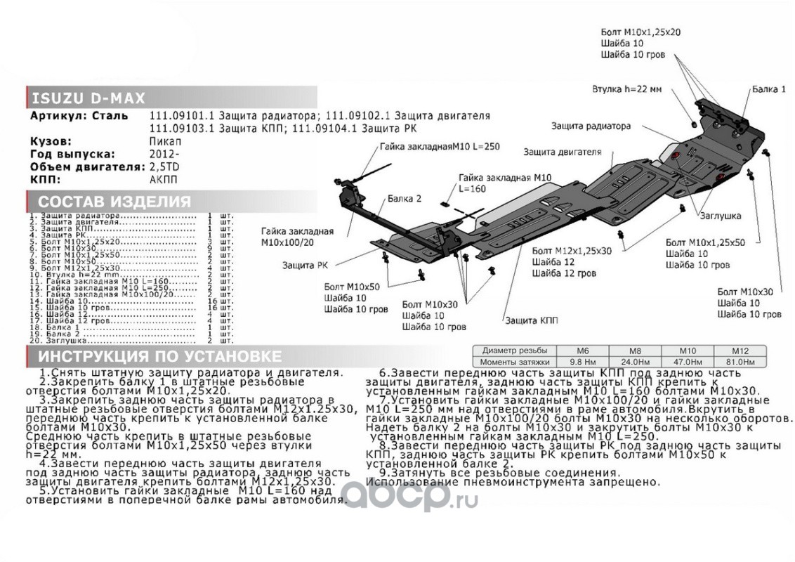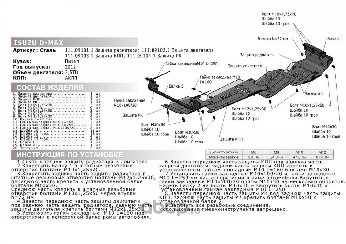 Защита картера Isuzu D-Max II 12-21, 111.09102.1