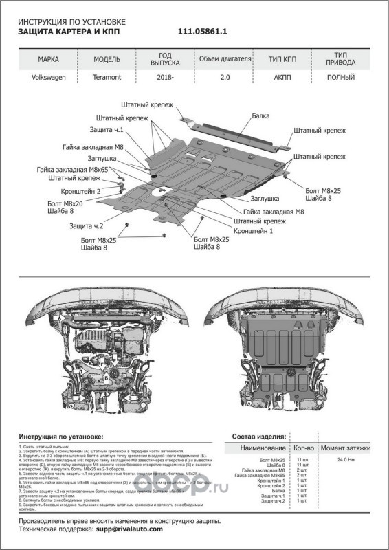 | Автоброня | 111058611 | ЗК+КПП VW Teramont 4WD 18-, st | ||