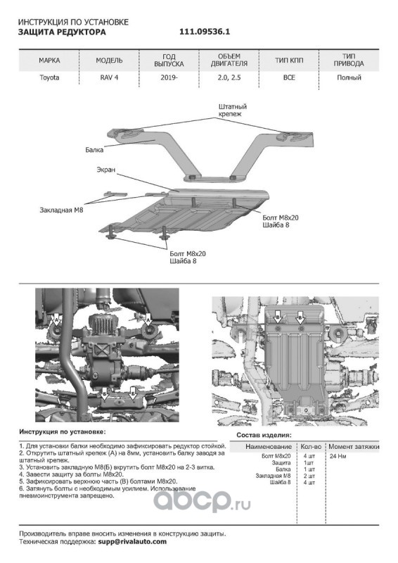 | Автоброня | 111095361 | Защ.редуктора Toyota RAV4 XA50 4WD 2019-, st 1.5mm | ||