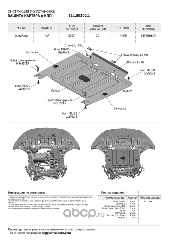 | Автоброня | 111093021 | Защита картера и КПП | ||