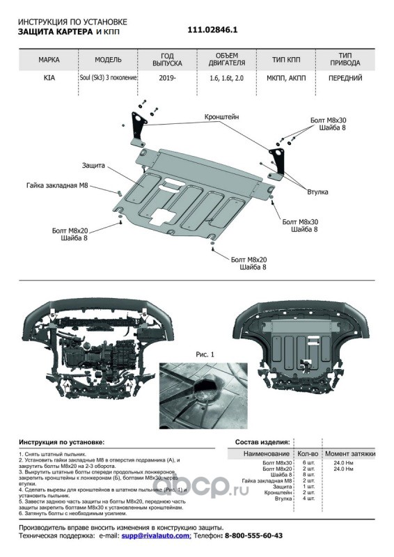 | Автоброня | 111028461 | Защита картера Kia Seltos 2020-/Kia Soul 2019- | ||