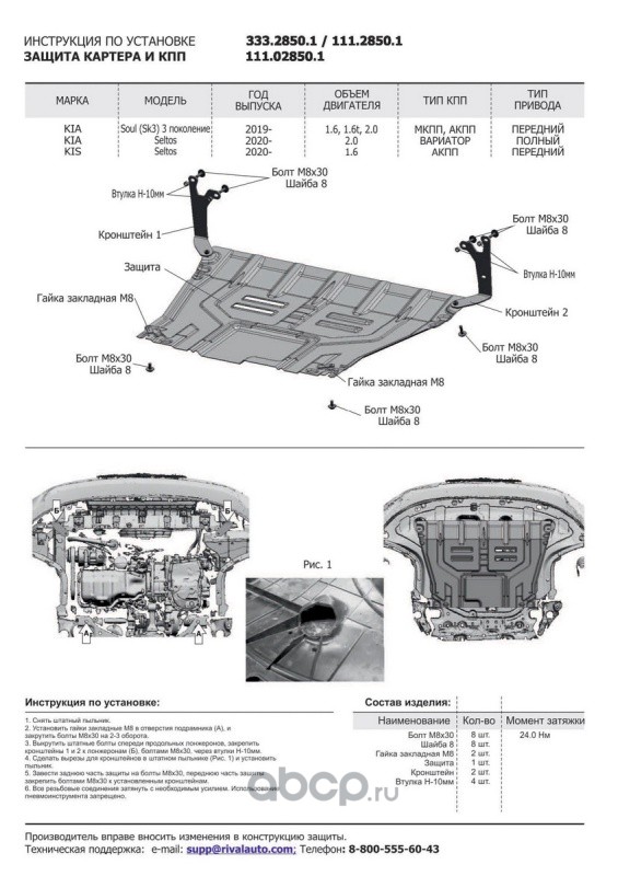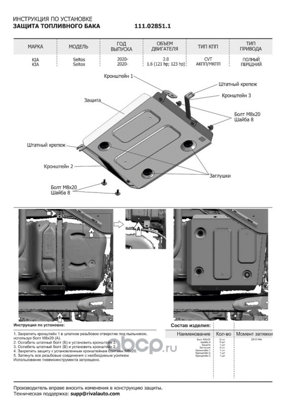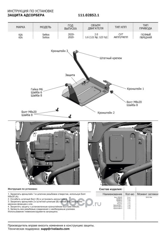 | Автоброня | K111028511 | К-т защит Kia Seltos FWD/4WD 20-, st 1.8mm 3 части | ||