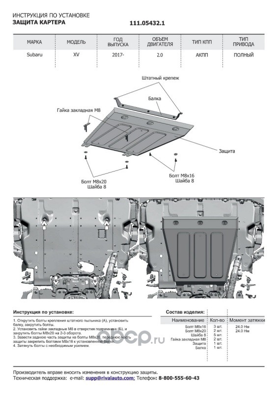 | Автоброня | 111054321 | Защита картера Subaru XV II 4WD 2017-, st 1.8mm | ||