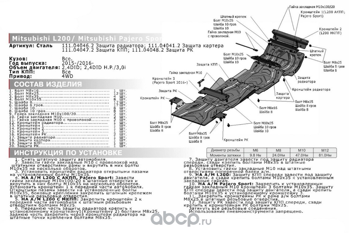 | Автоброня | K111040463 | К-т защит Fiat Fullback/Mitsub L200/Pajero Sport | ||
