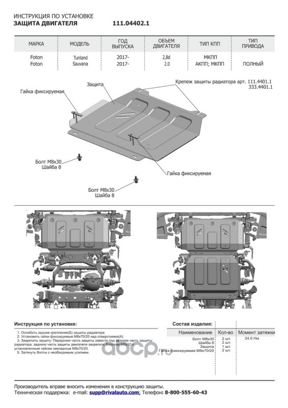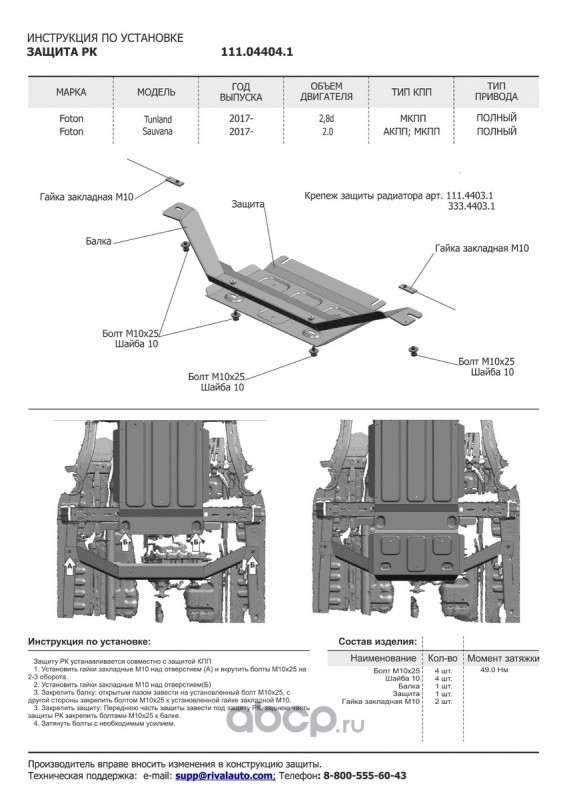 | Автоброня | 111044041 | Защита РК Foton Sauvana/Tunland, 4WD 17-, st 1.8mm | ||
