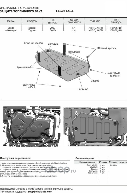 | Автоброня | 111051211 | Защ.топл. бака Skoda Kodiaq/VW Tiguan FWD st 1.5mm | ||