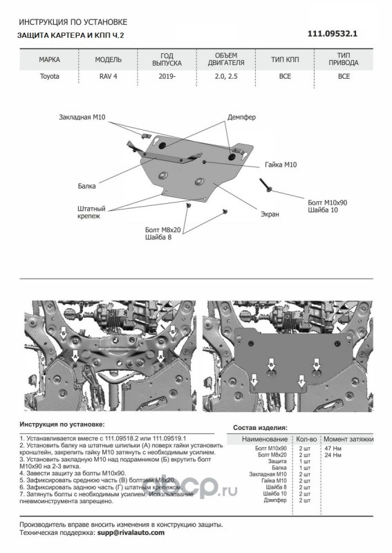 | Автоброня | 111095321 | ЗК+КПП ч.2 Toyota RAV 4 XA50 19-, st 1.8mm | ||