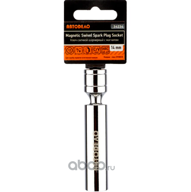 | АвтоDело | 34234 | Ключ свечной 14 шарнирный с магнитом (12PT, DR3/8, L-100 мм) | ||