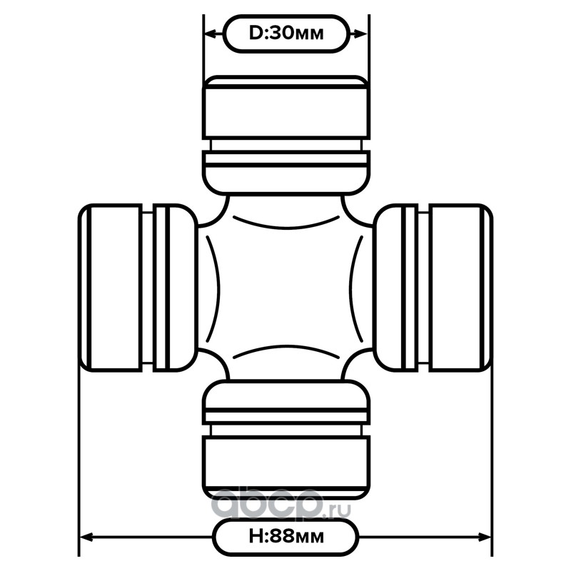Крестовина карданного вала в сборе (30х88), ГАЗ, УАЗ, МТЗ, крупный ролик
