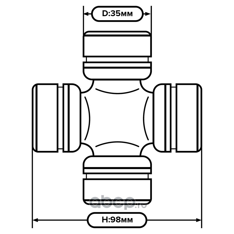 Крестовина карданного вала в сборе (35х98), ГАЗ, ПАЗ, МТЗ, БЕЛАЗ, сельхозшарниры 400Нм