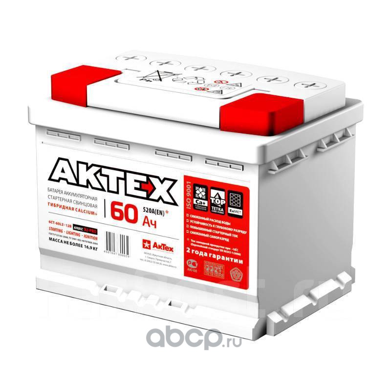 АкТех | 6CT60L | Батарея аккумуляторная 60А/ч 540А прямая полярн. стандартные (Европа) клеммы | |