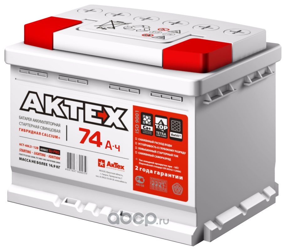 | АкТех | 6СТ601 | Батарея аккумуляторная 60А/ч 540А прямая полярн. стандартные (Европа) клеммы | ||