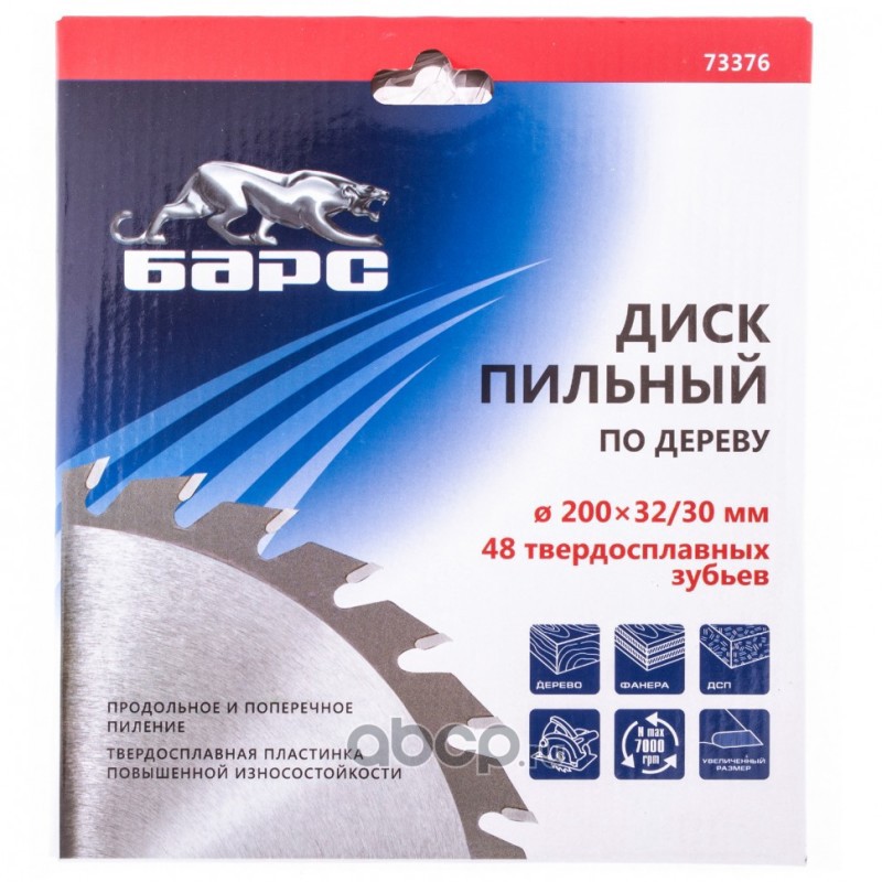 Пильный диск по дереву 200 x 32/30 мм, 48 твердосплавных зубъев Барс