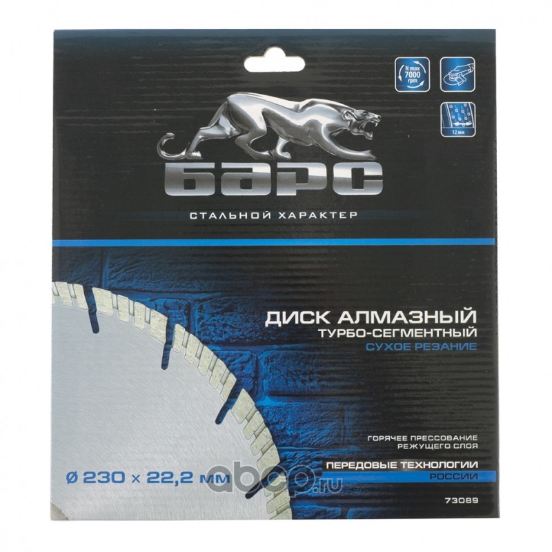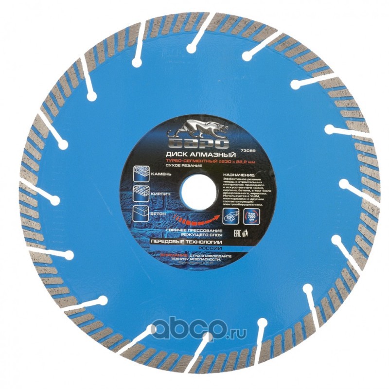 Диск алмазный, Турбо-сегментный 230 х 22.2 мм, сухая резка Барс